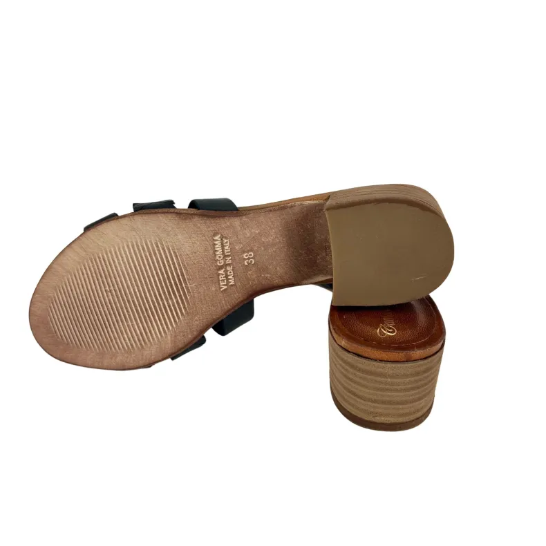Handcrafted black leather slipper.