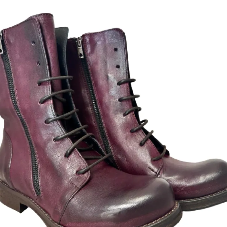 Lace-up model with two real side zips that make it possible to put it on without having to fasten it every time.