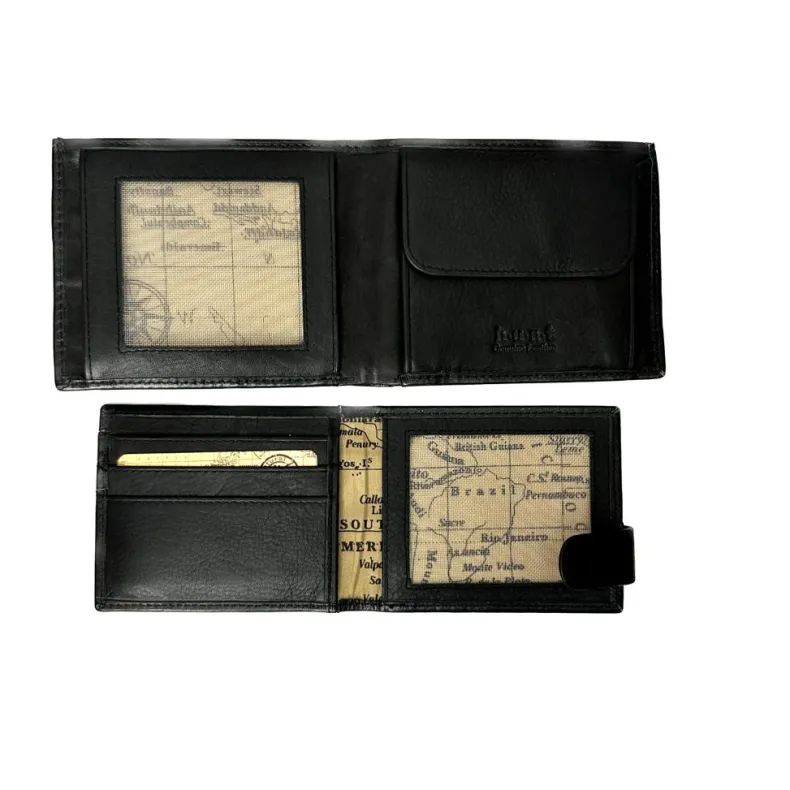 Equipped with 6 spaces for cards/credit cards, 2 spaces for banknotes, 1 space for coins closed by a button and divided into two compartments, 1 space for transparent documents.