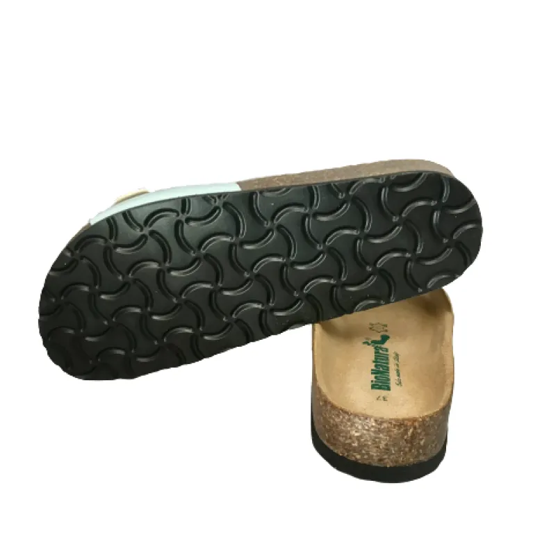 Bionatura slipper with patent synthetic bioflor upper.