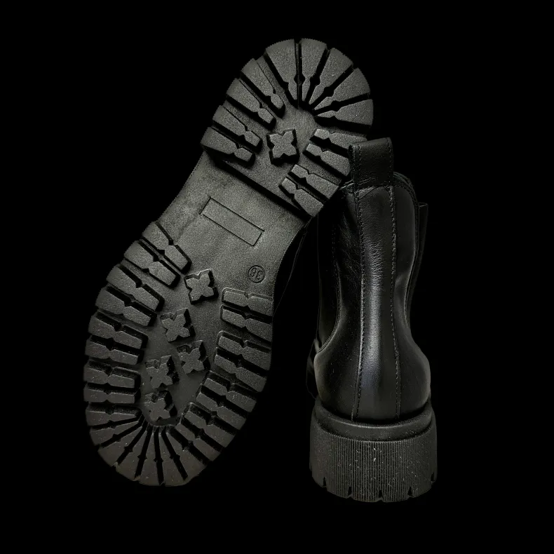 Beatles in calf leather, characterized by side elastic bands and visible shoe horn tabs.