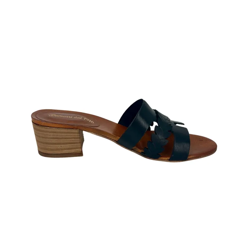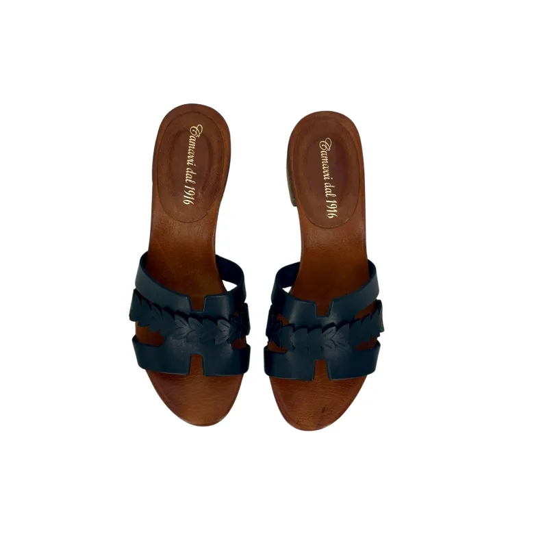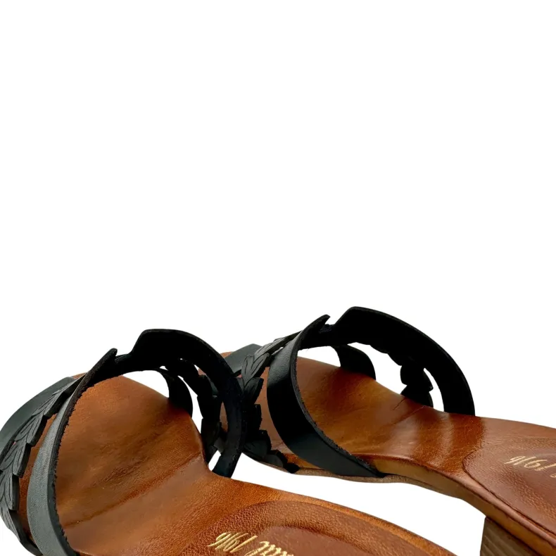 Handcrafted black leather slipper.