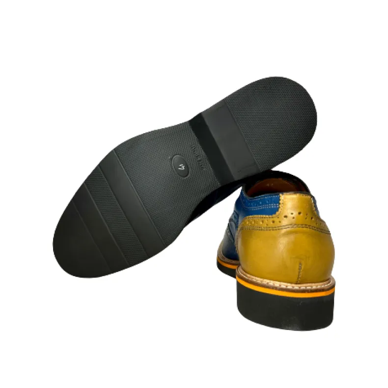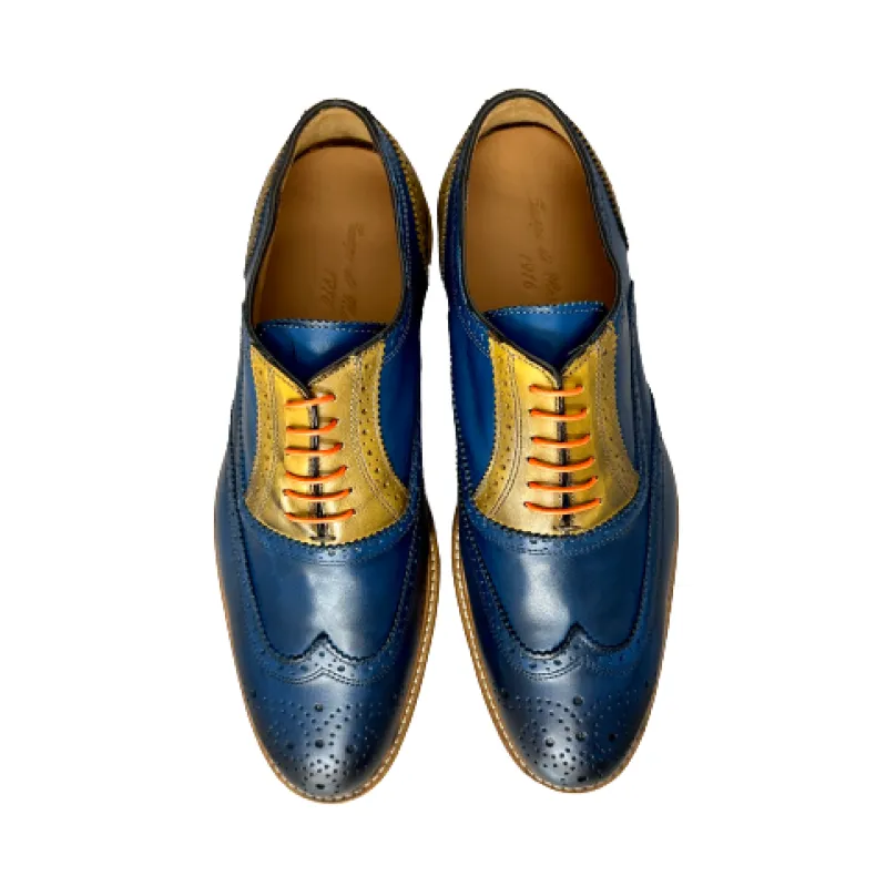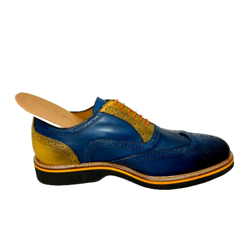 Blue and ocher leather lace-up.