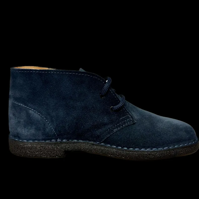 Blue handmade suede ankle boot.