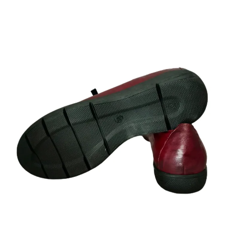 Color: burgundy with wrinkled effect.