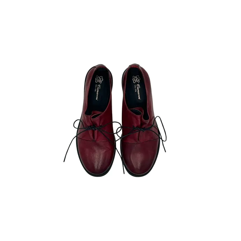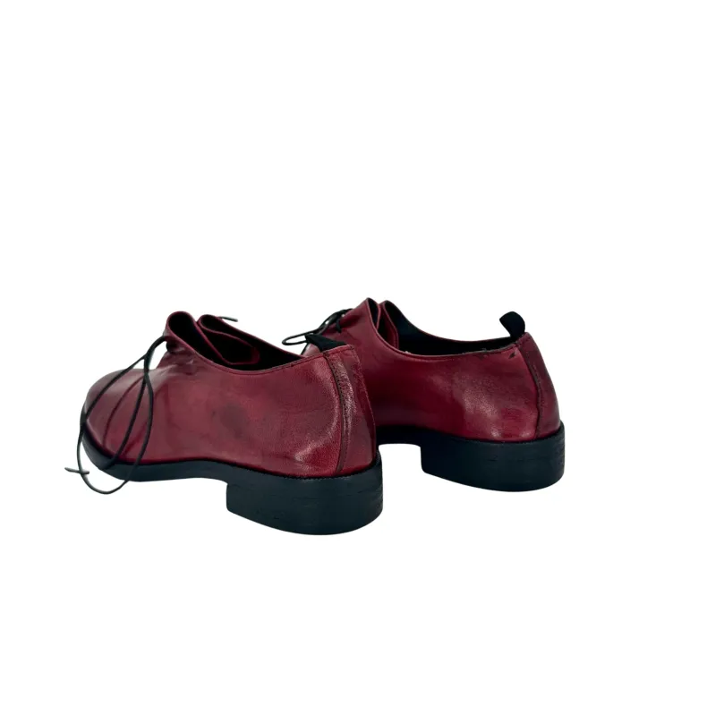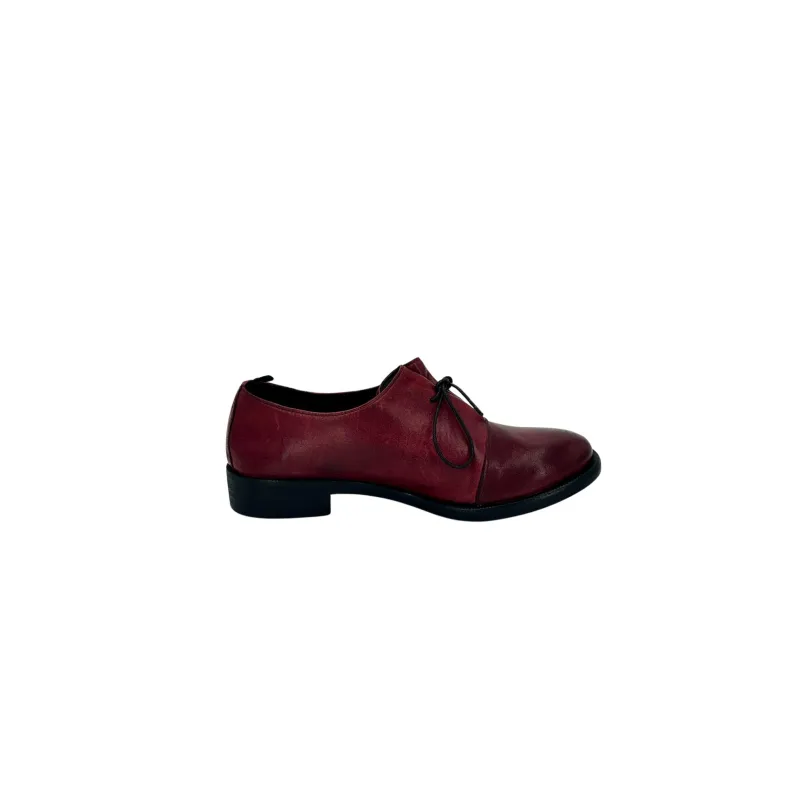 Handmade shoe in red dipped leather.