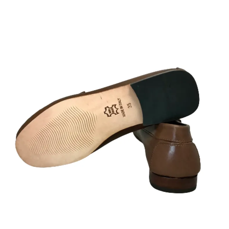 Cappuccino-colored calfskin loafer.