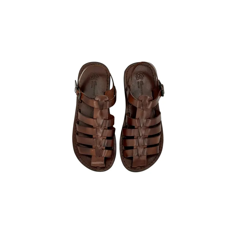 Handmade sandal in dark brown leather.