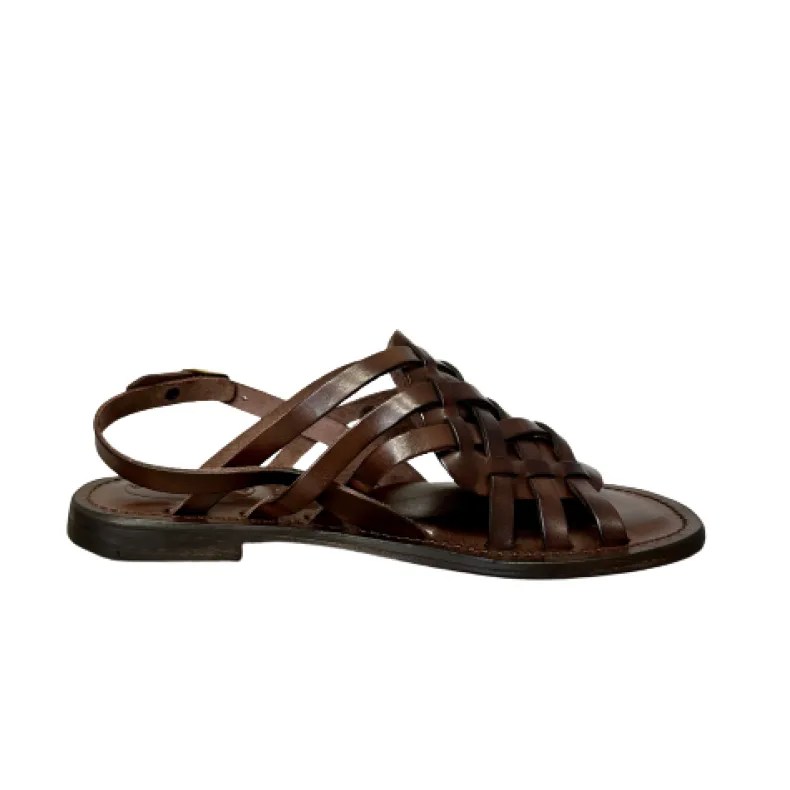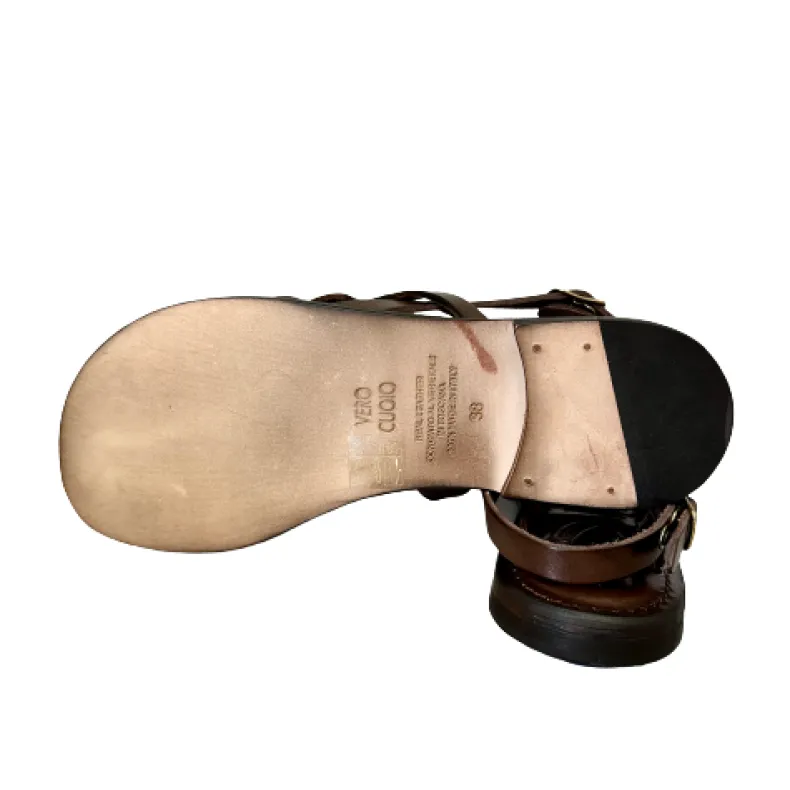 Handmade sandal in dark brown leather.Vegetable tanned and dipped leather.