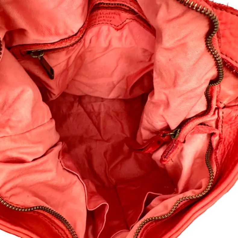 Inside we find an open pocket in red leather and on the other side a pocket closed with a zipper.