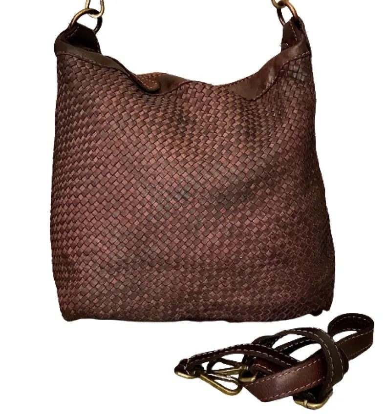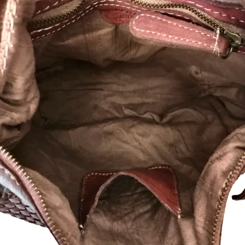 Original hand-woven leather bag by skilled craftsmen.