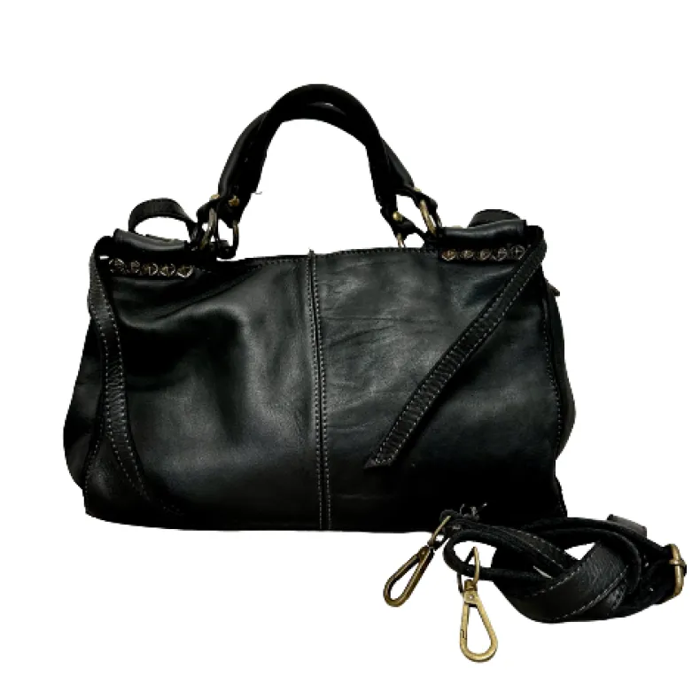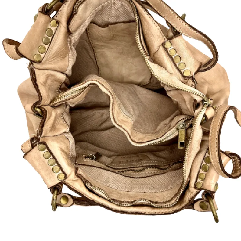 Fine full grain vegetable tanned and washed leather. This allows to give the leather the characteristic of a vintage leather and at the same time to enhance its colors and shades to the maximum.
