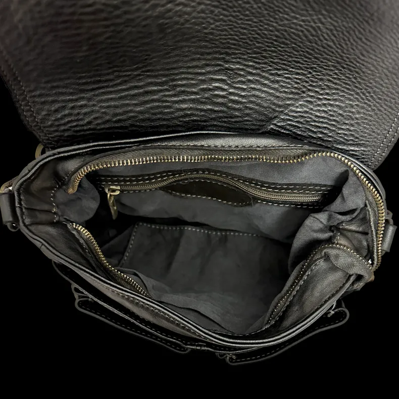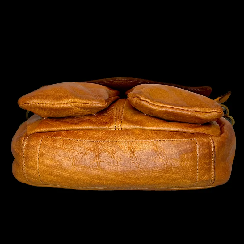 Fine full grain vegetable tanned and washed leather. This allows to give the leather the characteristic of a vintage leather and at the same time to enhance its colors and shades to the maximum.