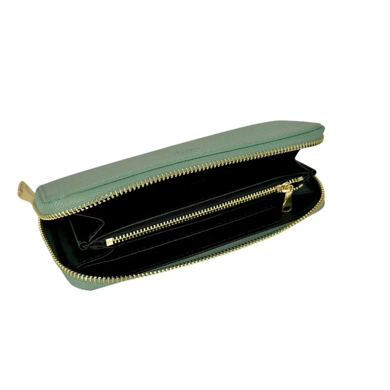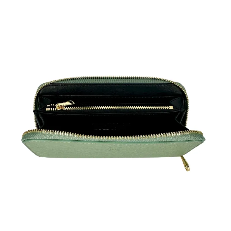 Equipped with: 2 compartments, pocket closed by zip, 8 card holder spaces, 2 other spaces.