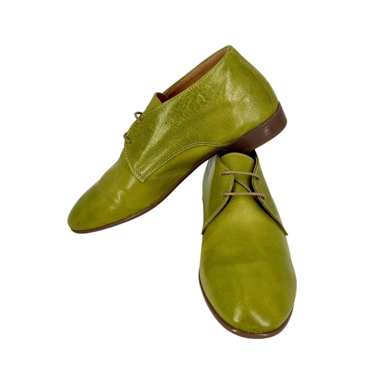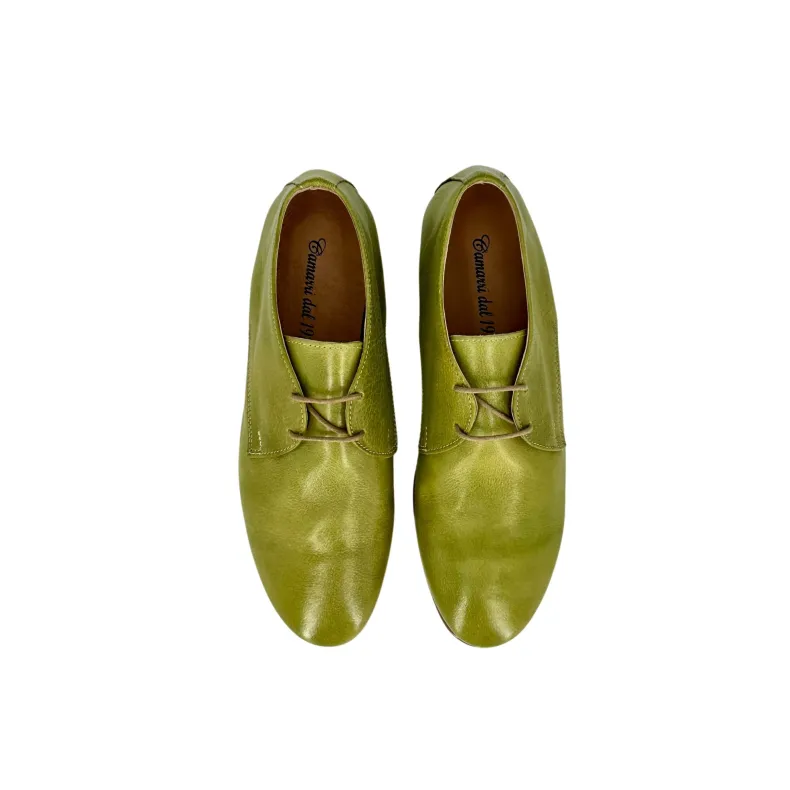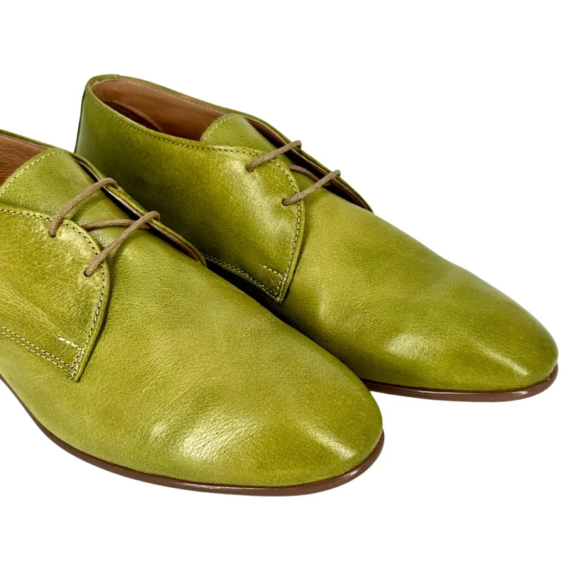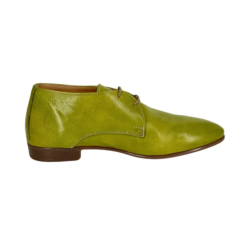 Handcrafted shoe in ivy green dipped leather.