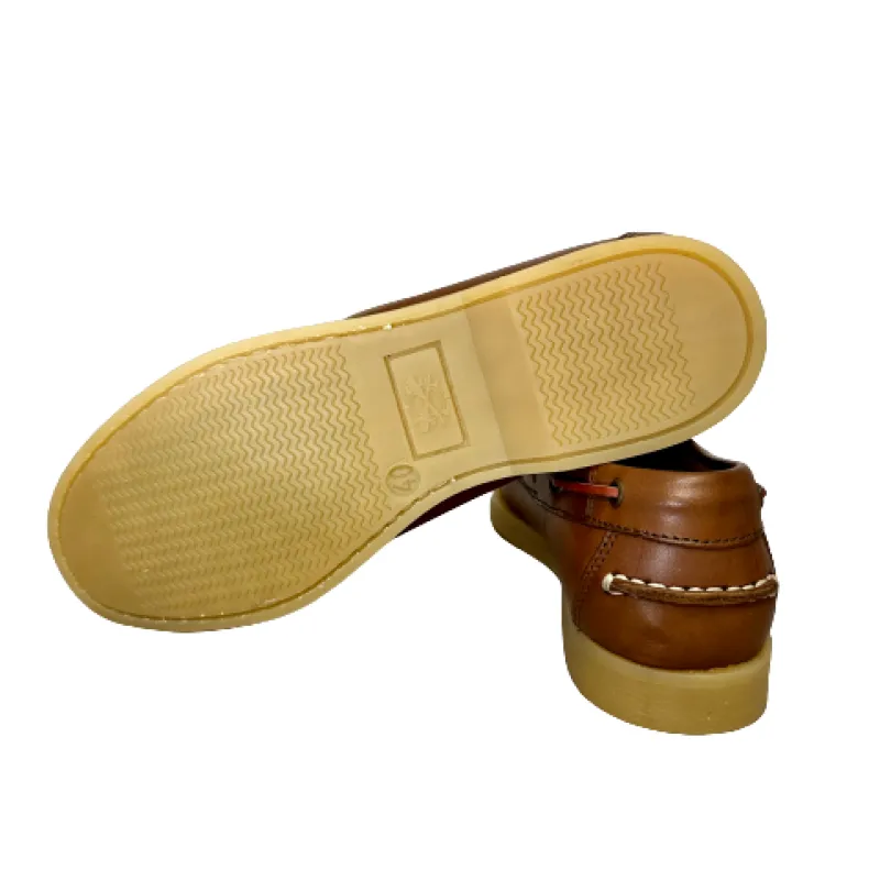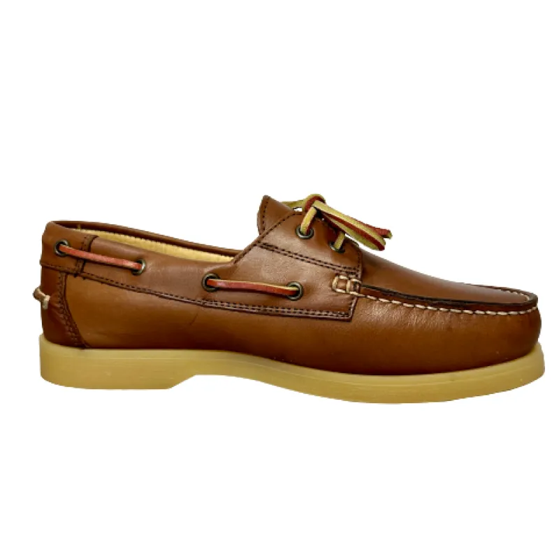 Handcrafted “Barca” model lace-up shoe in tan leather.