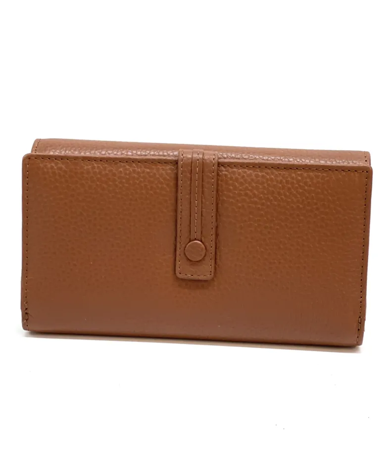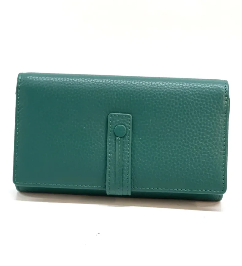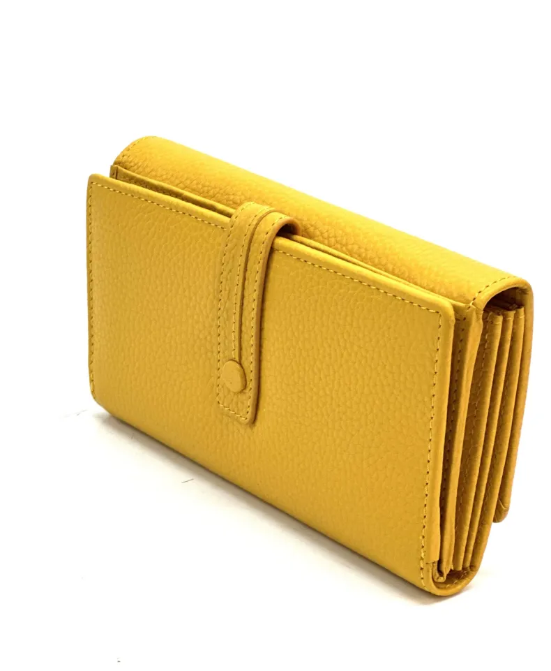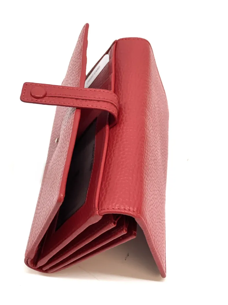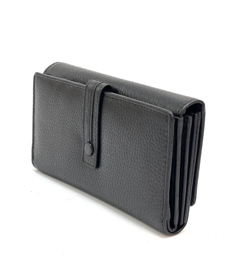 Made up of 2 parts: 3 spaces for cards/discredit cards, a transparent space for documents, 4 pockets for banknotes etc. divided by a coin pocket closed by a zip.
