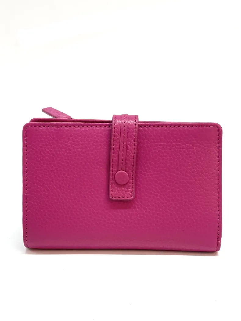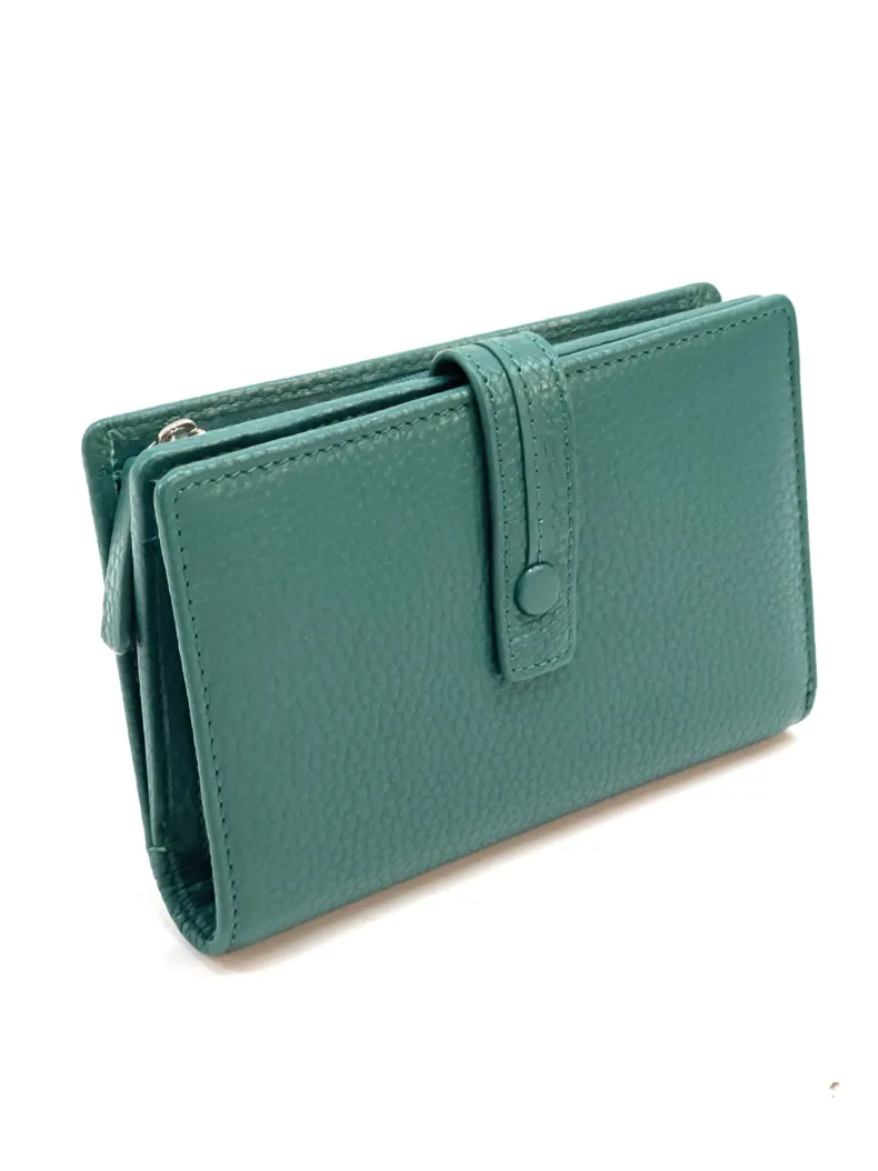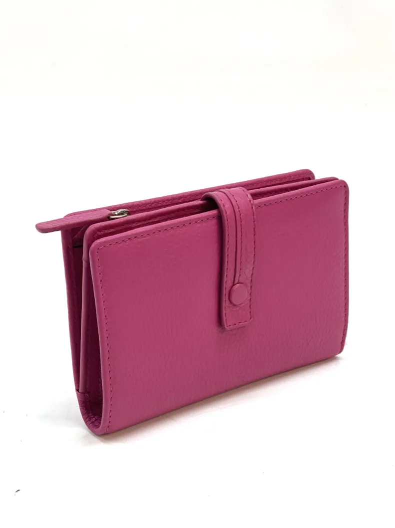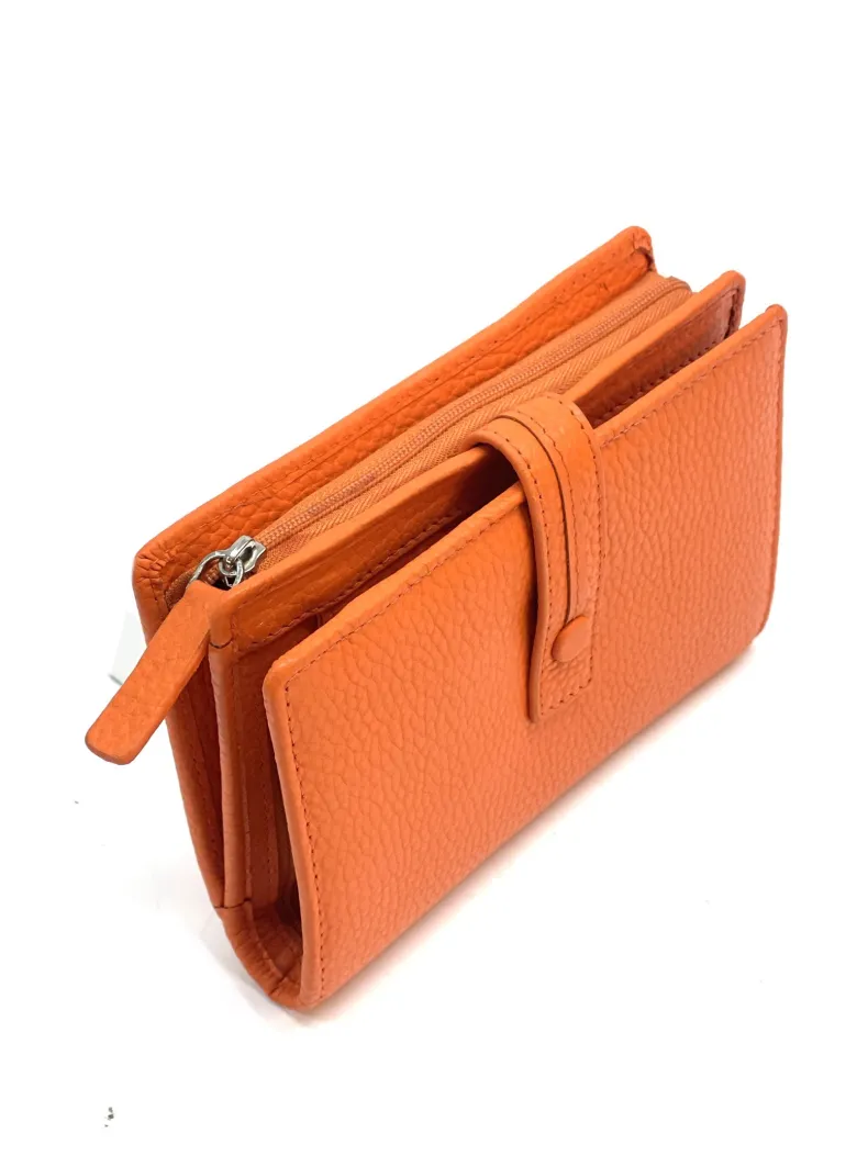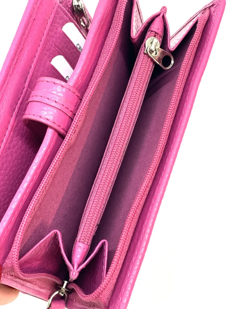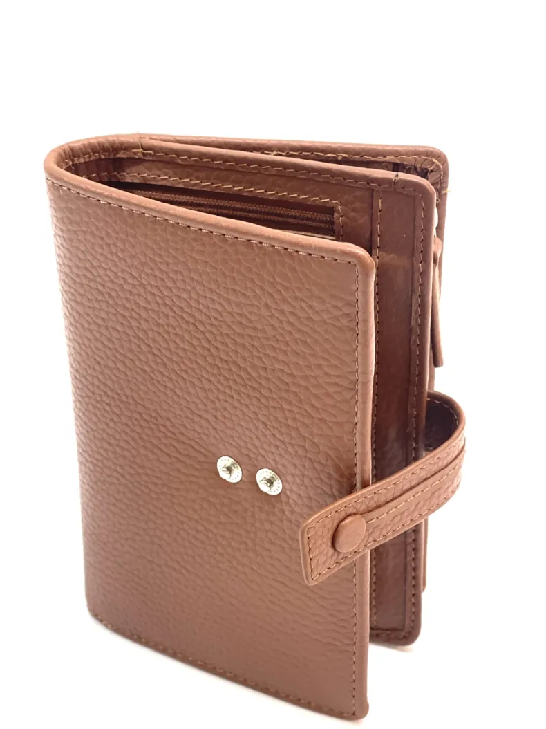 Part with button equipped with: 9 card/credit card holder spaces, 1 banknote holder space, 1 zippered pocket, 1 transparent document holder space.