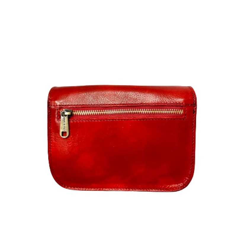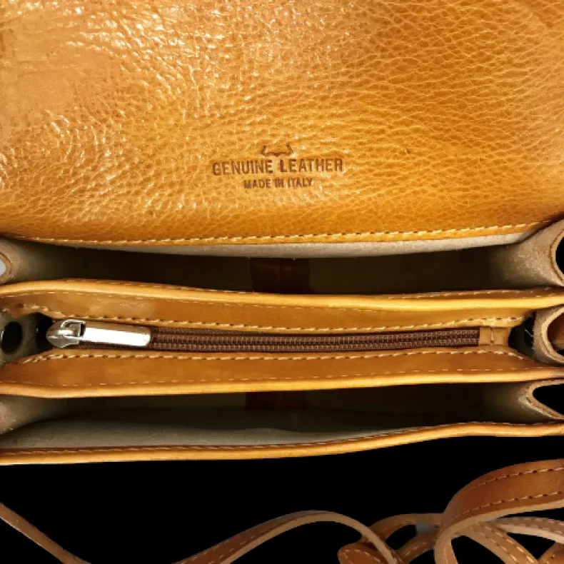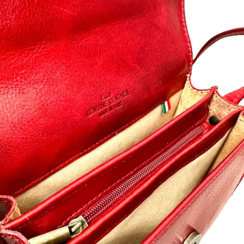 The interior is in natural leather and has three compartments: the one in the middle closed by a zip and one with a pocket closed by a zip.