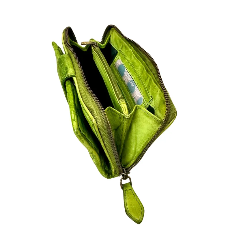 Equipped with: 13 spaces for cards / credit cards, 1 transparent space for documents, 1 space for banknotes, 4 other spaces and a coin holder part closed by zipper and divided into two compartments.
