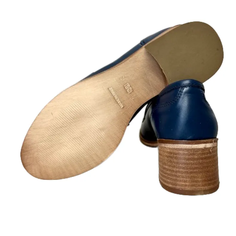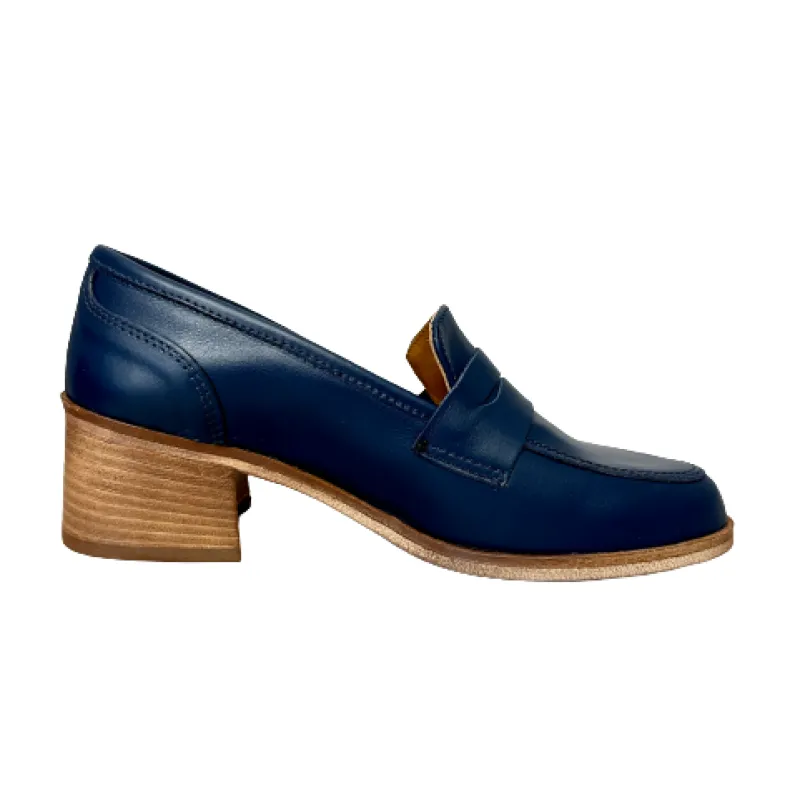 Handmade moccasin in blue leather college model.