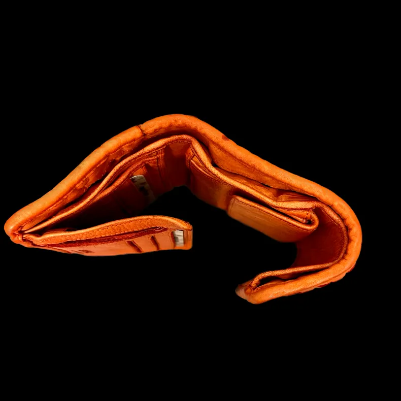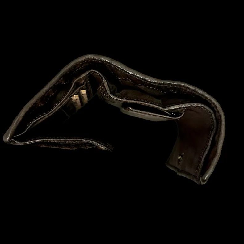 Equipped with: 1 coin purse closed by button, 7 spaces for cards / credit cards, 1 space for banknotes, 1 transparent space for documents, other 4 spaces.