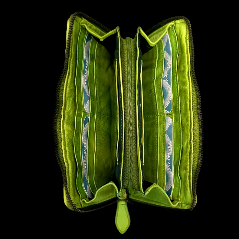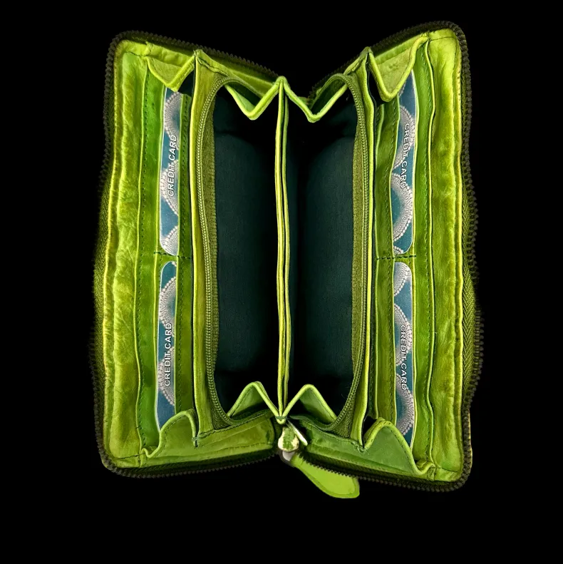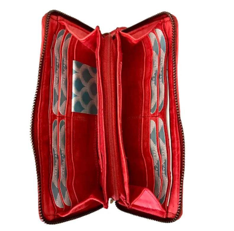 Equipped with: 12 spaces for cards / credit cards, 2 spaces for banknotes, 2 transparent spaces for documents, other 2 spaces. Space for banknotes closed by zipper, divided in turn into two compartments with a turkey each.