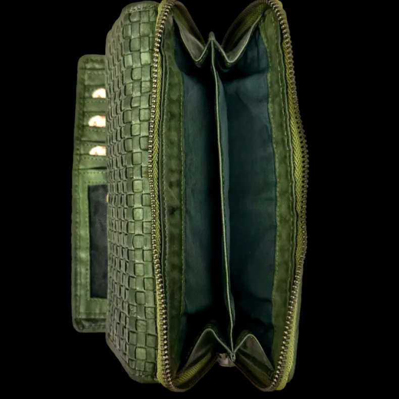 Very soft woven leather on both the front and back.