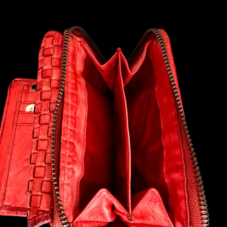 Equipped with: 1 part for coins closed by zipper and divided into two compartments, 11 spaces for cards / credit cards, 1 space for banknotes, 1 transparent space for documents, other 2 spaces.