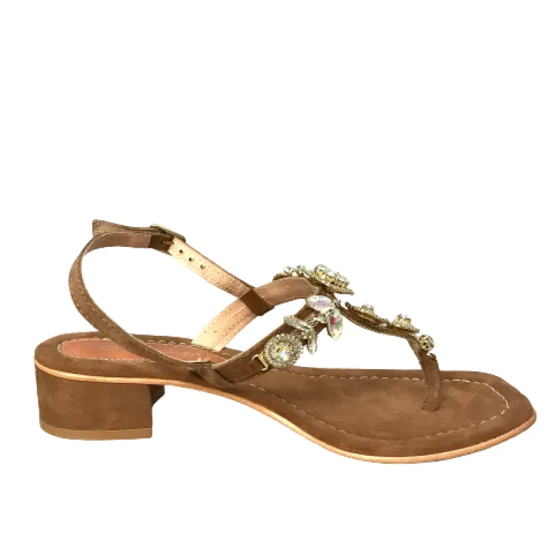 Handcrafted suede sandal with jewels.