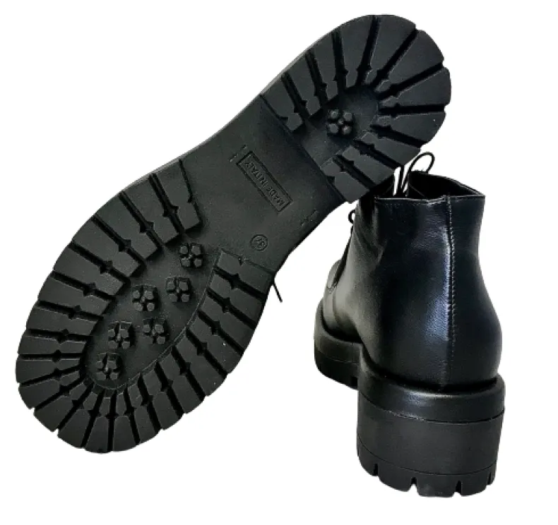 Handmade lace-up in black leather.