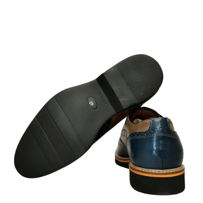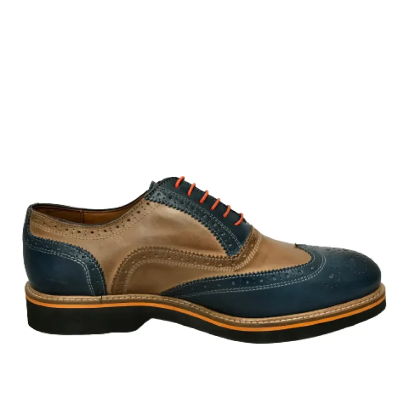 Lace-up in blue leather and leather.