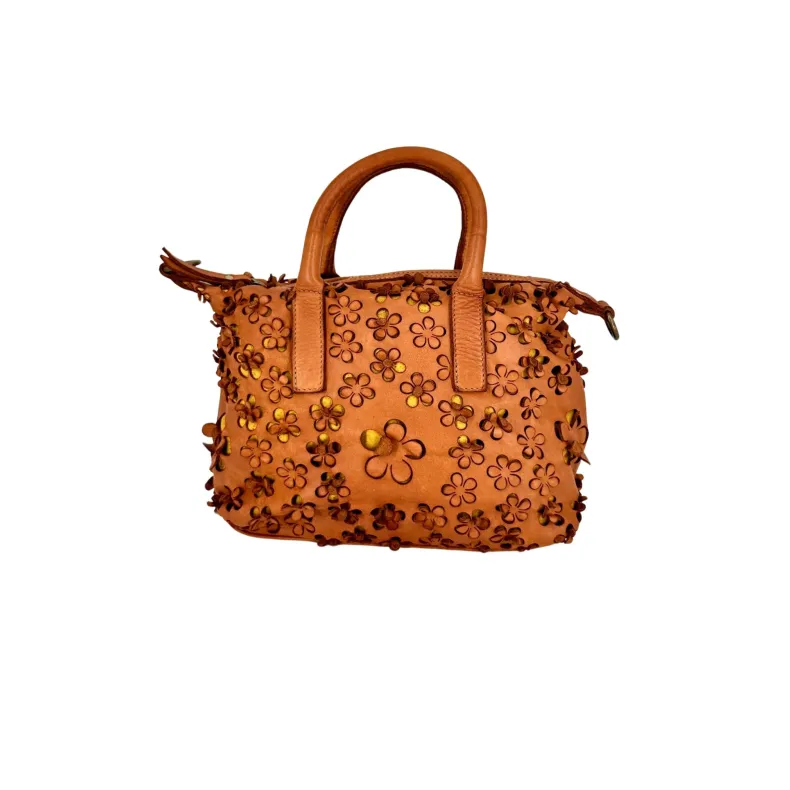 Lillà medium: Boston bag with lasered leather flowers on both the front and the back.