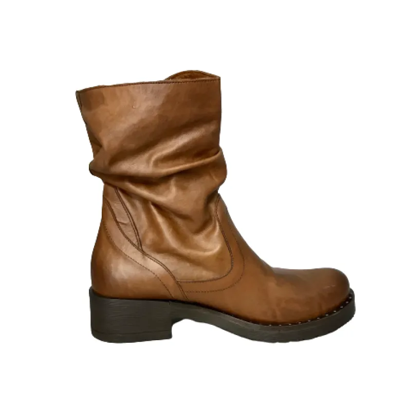 Handmade boot in tan leather.