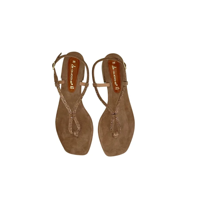 Handcrafted suede sandal with jewels.