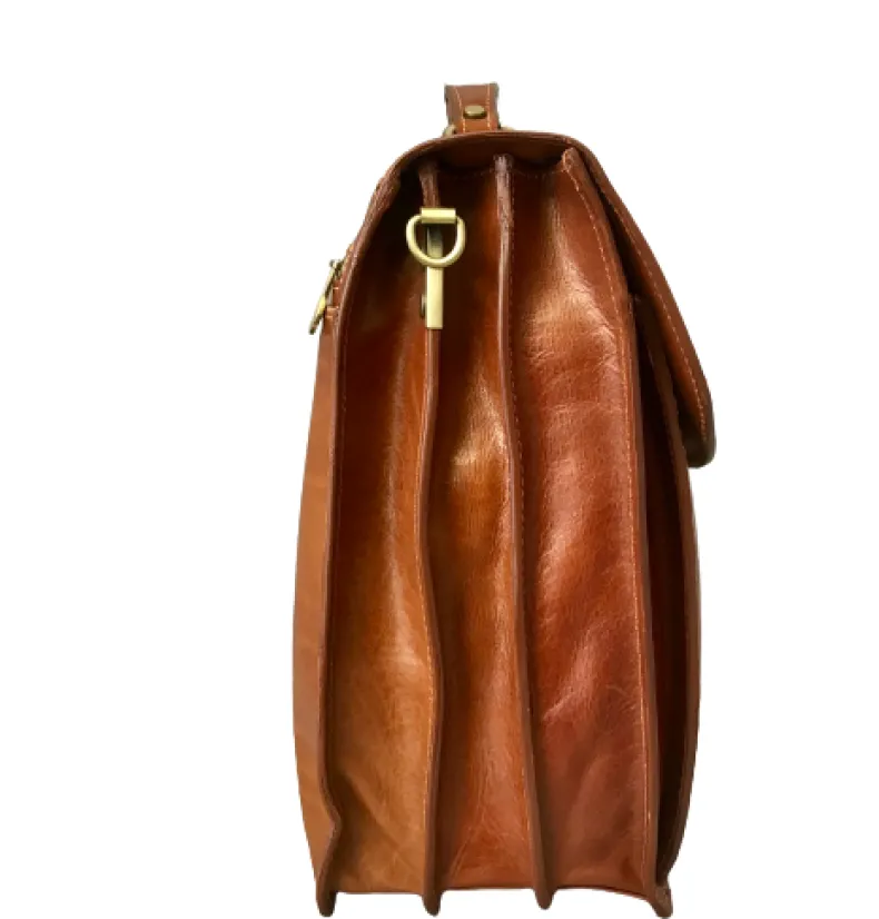 In the back of the briefcase there is a large open pocket and one closed by a zipper.