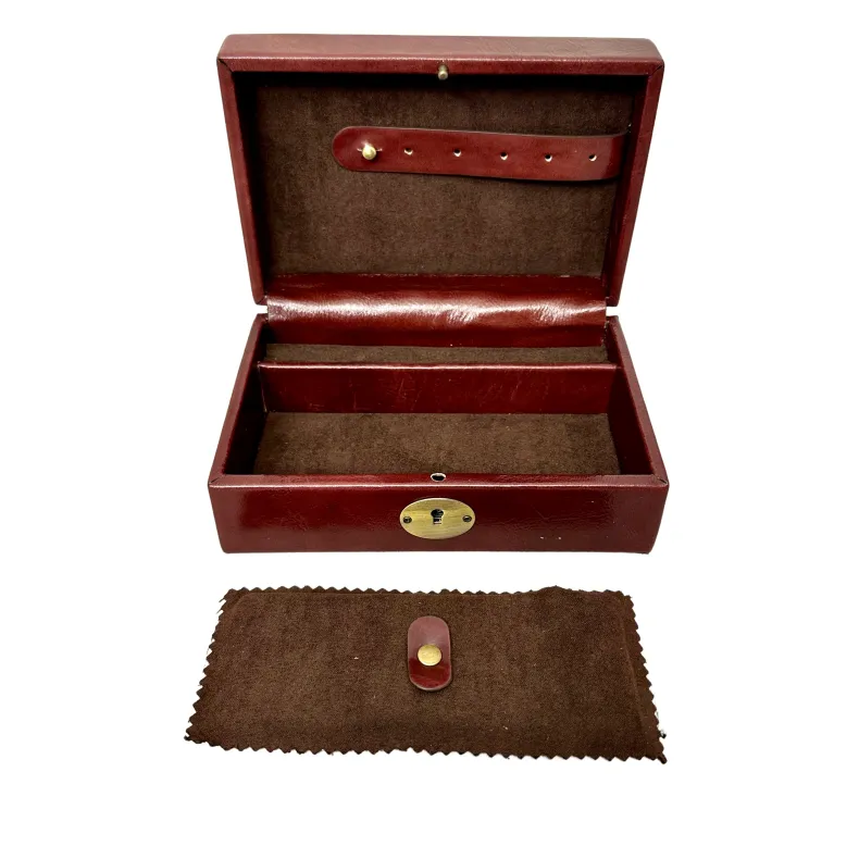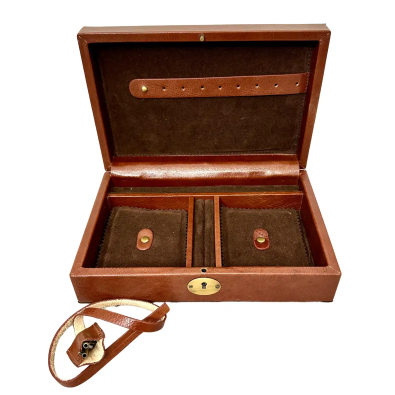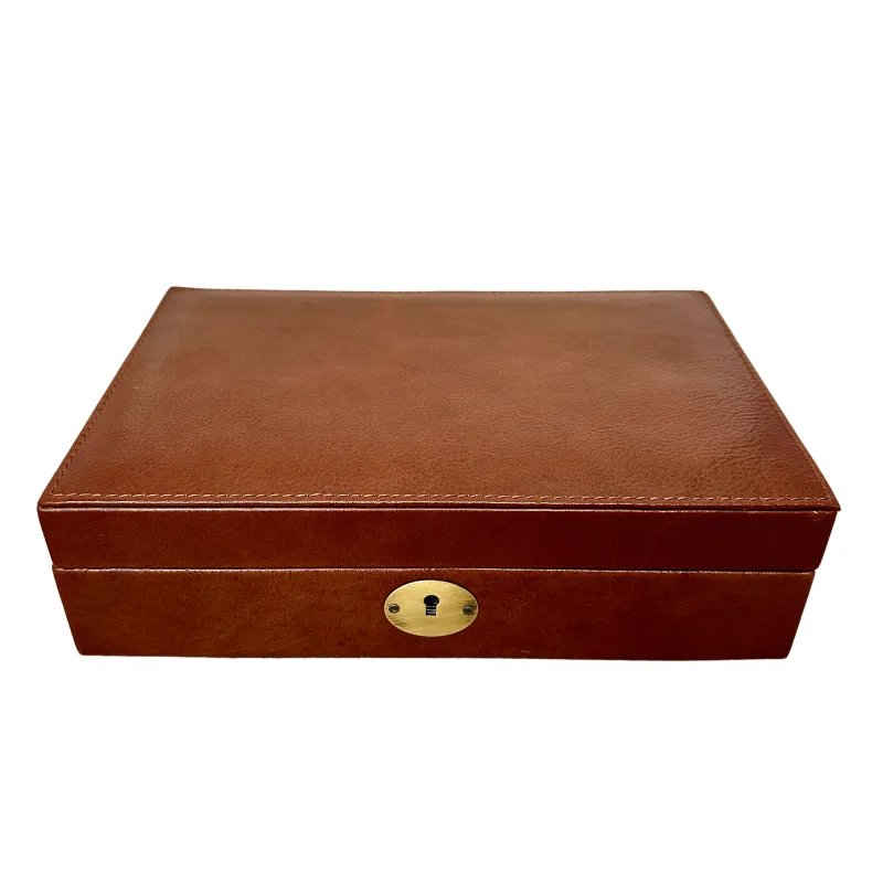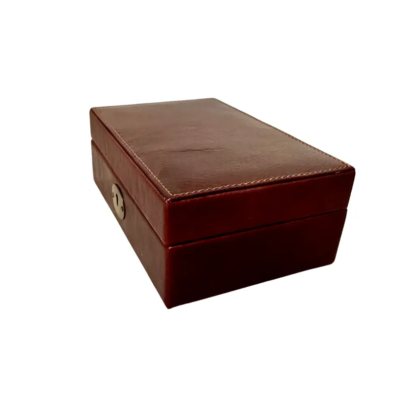 Handcrafted jewelry box in full grain vegetable tanned and hand buffered leather.